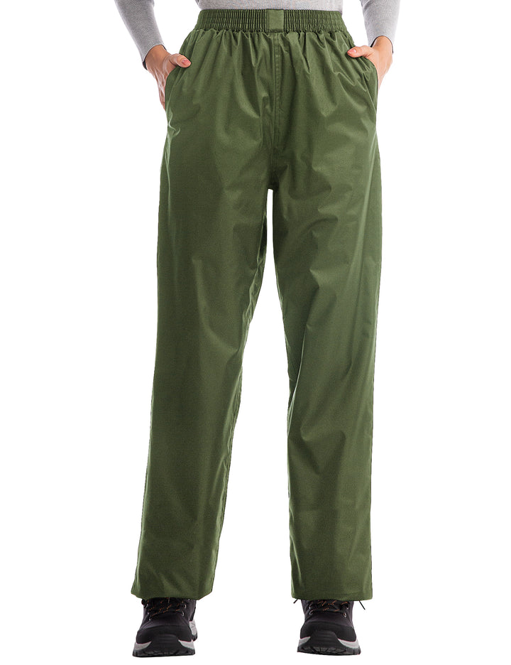Why Choose Us: Waterproof, comfortable, and 100% windproof rain pants made of high-tech nano-polyester fabric. Adjustable leg design for easy wearing of rain boots. Ergonomic fit with elastic waistband and breathable lining.